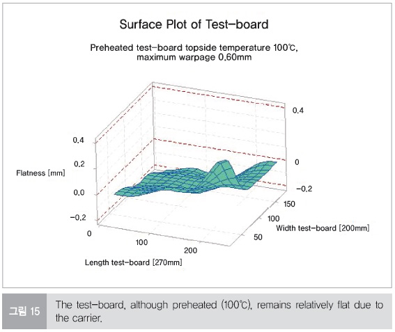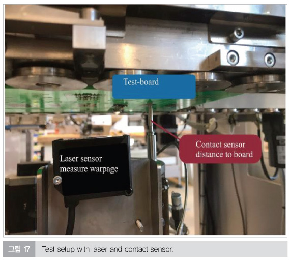 테스트 보드 솔더링 전에 캐리어에 놓았고, 휨은 정밀한 레이저 센서를 이용하여 측정하였다.