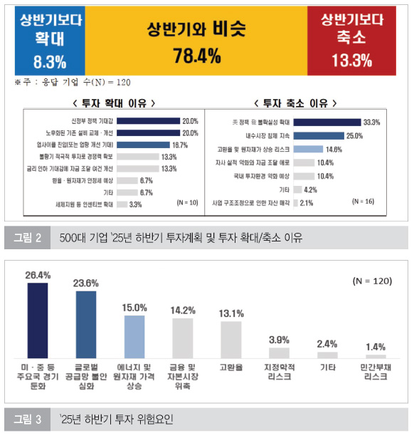 업종별 투자에 있어서, 반도체는 AI 기술 발전과 고부가가치 메모리 반도체 수요 호조에 힘입어 반도체 관련 설비투자가 견조한 흐름을 예상했다. 자동차 전장은 올해 상반기 주요 기업들의 노후 설비 교체 수요와 IT 인프라 투자 확대 등으로 일부 업종의 투자 여건이 개선되었다고 전했다.