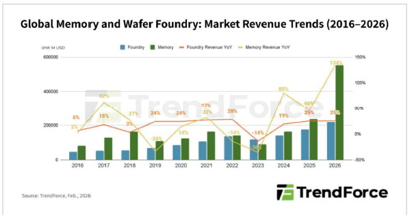TrendForce, 메모리 5,516억 달러 vs 파운드리 2,187억 달러