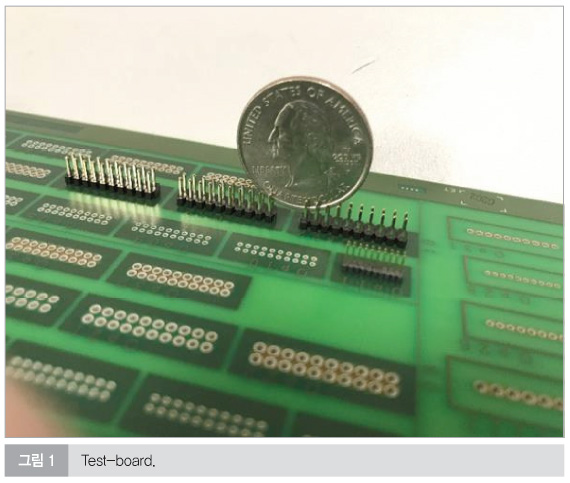 미세 피치 부품을 솔더링 할 때 주요 도전과제는 어떠한 솔더 브릿지도 나타나지 않게 하는 것이다. 일부 대량의 고열이 필요한 어셈블리의 경우, 홀 충진이 어려울 수도 있다. 서로 다른 설계 파라미터의 영향을 이해하기 위해, 솔더의 홀 충진 조사를 목적으로 서로 다른 레이어로 제작된 테스트 보드(2, 4, 6, 8 및 10레이어)를 사용했다. 이 테스트 보드에는 솔더 프로세스 윈도우를 확장하는데 필요할 수도 있는 모든 디자인 기능들을 포함하였다. 이러한 기능에는 솔더 마스크, 솔더 치프(solder thief), 5가지 피치(1.00, 1.27, 1.50, 1.75 및 2.00mm)에 있어서 서로 다른 홀 및 패드 직경이 포함되어 있다. 솔더성은 금속 표면의 상태에 영향을 받기 때문에 두 가지 다른 금속화제(immersion Sn, Cu OSP)를 서로 비교했다. 테스트 보드 치수는 285×184×1.6mm로 하였다. 어셈블리에 총 3,370개의 홀이 존재한다. 보드를 평평하게 유지하기 위해 팔레트를 사용하였다.
