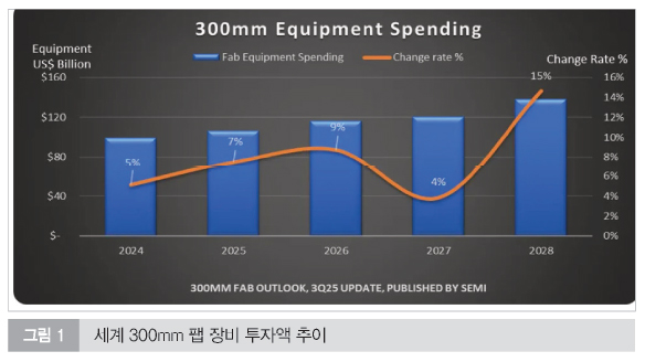 전 세계 반도체 산업이 AI 수요 확산과 공급망 자립 정책을 축으로 대규모 설비 투자를 이어가고 있는 가운데 300mm 팹 장비 투자 지속이 전망된다.