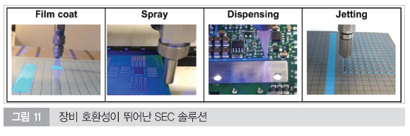 UV 경화형 SEC 솔루션은 장비 호환성이 매우 뛰어나다. Asymtek, PVA 등 기존 코팅 장비를 그대로 사용할 수 있다. 추가 설비 투자가 필요 없다.