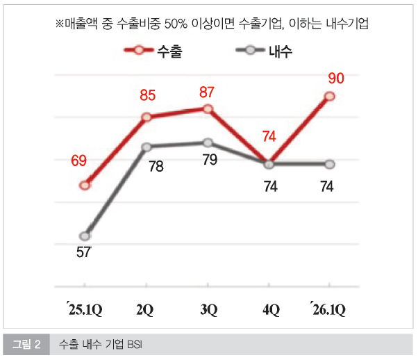 업종별로는 반도체와 화장품이 여전히 설비투자를 논의하는 핵심 산업으로 꼽힌다. 반도체는 AI 확산과 데이터센터 투자 확대에 따른 고대역폭메모리(HBM) 수요 증가, 범용 메모리 공급 부족에 따른 가격 반등이 동시에 작용한 결과다. 화장품 업종은 북미·일본·중국 등 주요 시장에서 K-뷰티의 위상이 강화되며 전 분기 대비 52포인트 급등, 조사 대상 업종 중 가장 큰 상승폭을 나타냈다.