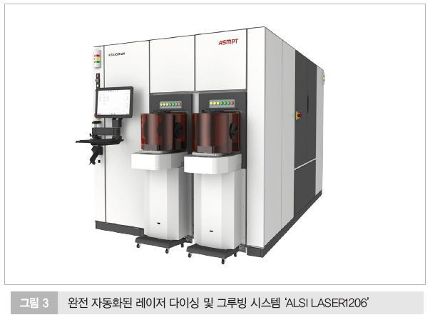 다이싱 및 그루빙 공정을 위해 개발된 ALSI LASER 1206은 IDM 및 파운드리 업체의 증가하는 웨이퍼 가공 수요에 대응하는 차세대 플랫폼이다. ASMPT가 특허 출원한 ‘멀티빔 UV 레이저’ 기술을 적용해 가공 시 발생하는 열 영향을 최소화하고 버(burr) 형성을 억제한다. 이를 통해 다이(Die)의 강도를 유지하면서도 초정밀 가공을 실현하며, 필름 프레임 및 벌크 웨이퍼 모두를 지원해 선도적인 플라즈마 다이싱 공급업체들로부터 이미 그 성능을 검증받았다.